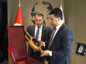 NEVŞEHİR(TRENDHNABER)-İçişleri Bakanlığının son atama kararnamesi ile Şanlıurfa’nın Siverek ilçesinden Avanos Kaymakamlığına atanan Aziz Gölbaı, Belediye Başkanı Celal Alper’i makamında ziyaret ederek bir süre görüştü.