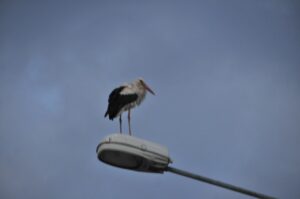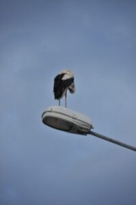 NEVŞEHİR(TRENDHABER)- Narin yapısı ve sevimliliği ile dikkatleri üzerinde toplayan kanatlı hayvanlar gurubunun en şirin kuşlarından biri olan Leylek, Göreme beldesinde bir aydınlatma direğinin lambasının üzerinde mola verdi.