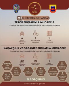 NEVŞEHİR(TRENDHABER)- Nevşehir İl Emniyet Müdürlüğü ve İl Jandarma Komutanlığı il genelindeki Haziran ayına ilişkin asayiş verilerini kamuoyu ile paylaştı.