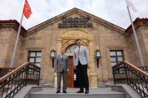 NEVŞEHİR(TRENDHABER) Bahçelievler Belediye Başkanı Dr. Hakan Bahadır, Ürgüp Belediye Başkanı Mehmet Aktürk’ü makamında ziyaret ederek bir süre görüştü.