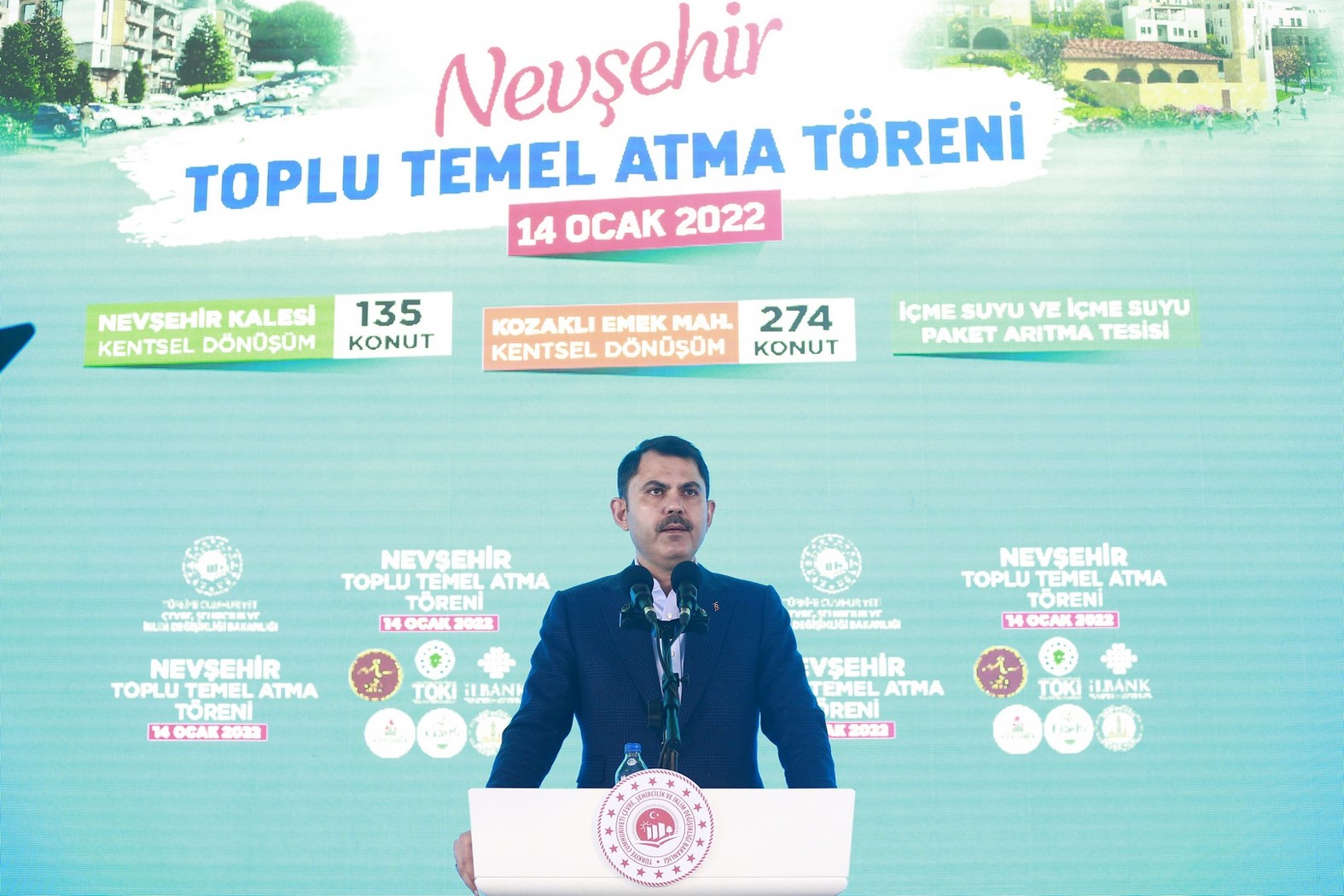 Bakan Kurum, Nevşehir’de toplu temel atma töreninde konuştu: