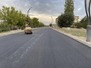 İçme suyu hattı, doğalgaz hattı ve elektrik hattı biten İnönü Caddesi’nde yapılan plentmiks temel ardından sıcak asfalt serimi başlatıldı.