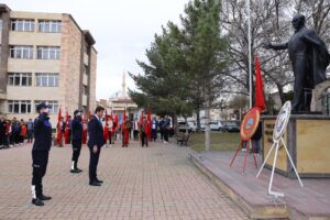 Başkan Aktürk, İlk olarak ilçe Kaymakamlık binası önünde Atatürk Anıtına çelenk sunarak saygı duruşunda bulundu.