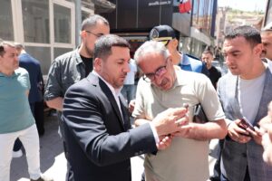 NEVŞEHİR(TRENDHABER)- Nevşehir Belediye Başkanı Rasim Arı, Cami Cedit Mahallesi Sarraflar Çarşısı’nda bulunan esnaflarla ile bir araya gelerek sohbet etti. Başkan Arı, esnafların sorunlarını ve beklentilerini dinledi, yürütülen çalışmalar hakkında çarşı esnafına bilgiler aktardı. Geleneksel hale dönüşen ve her hafta farklı esnaf gurupları ve vatandaşlarla farklı mahallelerde bir araya gelmeye devam eden Belediye Başkanı Rasim Arı, bu sabah erken saatlerde Cami Cedit Mahallesi Tahmis Caddesi Sarraflar Çarşısı girişinde bulunan Demirtaşlar VİP Mağaza mihmandarlığında esnaflarla bir araya gelerek sohbet etti ve kahvaltı yaptı.