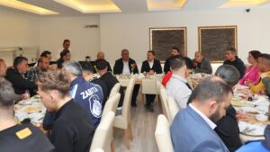 NEVŞEHİR(TRENDHABER)- Nevşehir Belediye Başkanı Rasim Arı, Yeni Mahalle Diriliş Bulvarı’nda bulunan esnaflarla ile bir araya gelerek sohbet etti. Başkan Arı, esnafların sorunlarını ve beklentilerini dinledi, yürütülen çalışmalar hakkında bilgiler verdi. Geleneksel hale dönüşen ve her hafta farklı esnaf gurupları ve vatandaşlarla bir araya gelmeye devam eden Belediye Başkanı Rasim Arı, bu sabah erken saatlerde Yeni Mahalle Diriliş Bulvarı üzerinde bulunan Grand Öztürk Otel’de esnaflarla bir araya gelerek sohbet etti ve kahvaltı yaptı.