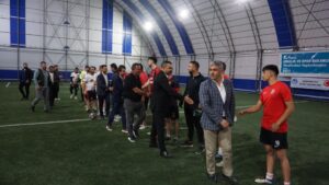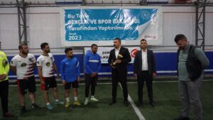 NEVŞEHİR(TRENDHABER)- Yazıhüyük Belediye Başkanı Cengiz Çavdar,Derinkuyu Ülkü Ocakları Başkanlığı tarafından Ülkücü Şehitler adına düzenlenen futbol turnuvasında başarılı olan takımların mutluluğuna ortak oldu.