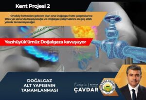 Başkan Cengiz Çavdar; “ Kent Projemizin ikincisi Ortaköy üzerinden gelecek olan yüksek basınçlı Doğalgaz hattı projemizle kasabamızdaki tüm hanelerimize doğalgazımızı ulaştıracağız. 2024 sonunda başlamış. olup, 2025’te tüm hanelerde doğalgazımız yanacaktır inşallah.