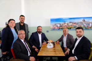 Açılışın ardından Başkan Erkan Çiftci, Kaymaklı Belediye Başkanı Harun Çekiç ve beraberindeki heyetle birlikte AK Parti İlçe Başkanı Turan Balak’ı ilçe başkanlığında ziyaret etti.