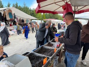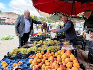 NEVŞEHİR(TRENDHABER)- Nevşehir’in Derinkuyu ilçesine bağlı Yazıhüyük beldesinde, Belediye Başkanı Birol Demirdelen, belde merkezinde kurulan pazaryerinde  esnafları ziyaret ederek, hayırlı işler dileklerinde bulundu.