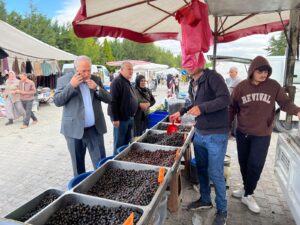 Pazar esnaflarını Yazıhüyük Belediye hizmet binası önündeki caddede kurulan haftalık Pazar tezgahlarında ziyaret eden Yazıhüyük belediye Başkanı Birol Demirdelen, esnaflarla  ve Pazar alışverişi yapan vatandaşlarla da görüştü.