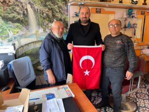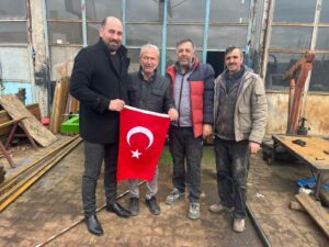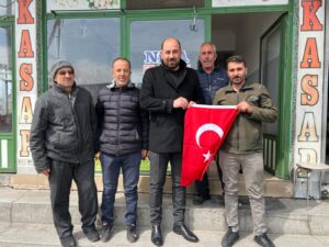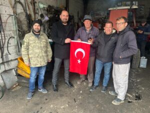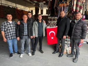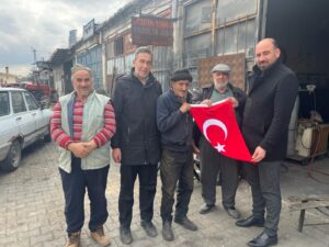 Başkan Harun Çekiç, Kaymaklı beldesinin çeşitli merkezlerinde farklı meslek dallarında faaliyet gösteren esnaf ve sanatkarları işyerlerinde ziyaret edip Türk Bayrağı hediye etti.