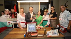 Başkan İbaş, farklı ülkelerin halk danslarının bir büyük şölene dönüşmesine yaptıkları katkılardan dolayı aralarında Kuzey Kıbrıs Türk Cumhuriyeti, Bulgaristan ve Hindistan’ın ekiplerinin de bulunduğu bir grup ülkenin Halk Dansları ekiplerinin yetkililerini Avanos Belediyesinde ağırladı.