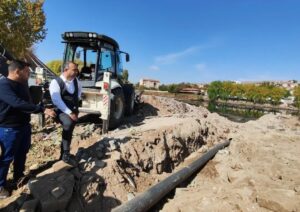 NEVŞEHİR(TRENDHABER)- Avanos Belediye Başkanı Belediye Başkanı Celal Alper İbaş,  restorasyon çalışmaları başlayan ve üst beton zemini kırılmaya devam edilen Tarihi Taş Köprü’ de incelemelerde bulundu. Başkan İbaş,  Kızılırmak içerisinden geçirilen isale su hattındaki çalışmaları da  yerinde inceledi.