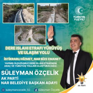 Nar Belediye Başkanı ve AK Parti Nar Belediye Başkanı Süleyman Özçelik, Nar beldesinde farkındalık oluşturan dev projelerini açıklamayı sürdürüyor.