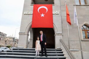 NEVŞEHİR(TRENDHABER)- Nevşehir Belediye Başkanı Dr. Mehmet Savran, 23 Nisan Ulusal Egemenlik ve Çocuk Bayramı dolayısıyla koltuğunu İlkokul 3. sınıf öğrencisi Fatma Ezgi Güçlü’ye devretti.
