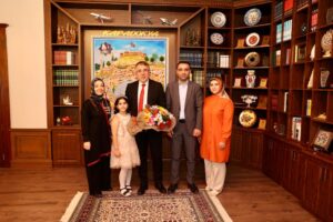 Savran, daha sonra makam koltuğuna oturan Güçlü ve ailesi ile birlikte hatıra fotoğrafı çektirdi.