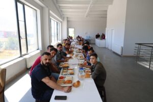 Belediye Başkan Yardımcıları Nafiz Dirikoç ve Furkan Feralan’ın da katıldığı ziyarette Savran, işçilerle öğle yemeği yiyerek bir süre sohbet etti.