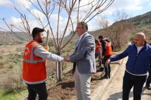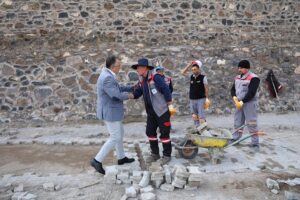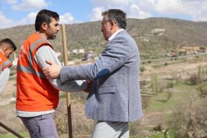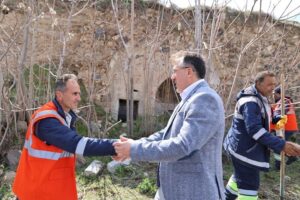 NEVŞEHİR(TRENDHABER)- Nevşehir Belediye Başkanı Dr. Mehmet Savran, eski Göre Yolu bölgesinde çevre düzenlemeleri çalışmalarını yürüten Park ve Bahçeler Müdürlüğü ekiplerini, sahada ziyaret ederek moral verdi.