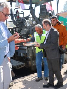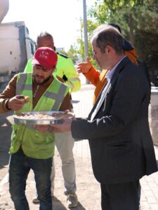 Başkan Çamcı,Uçhisar Belediyesi tarafından gerçekleştirilen alt yapı ve asfaltlama çalışması yapan ekiplere baklava ziyafeti de çekerek, çalışanlara teşekkür etti.