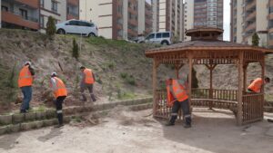 Sabahın erken saatlerinde mahallede toplanan belediyenin Fen İşleri Müdürlüğü, Temizlik İşleri Müdürlüğü, Park ve Bahçeler Müdürlüğü, Muhtarlık İşleri Müdürlüğü, İtfaiye Müdürlüğü, Su ve Kanalizasyon Müdürlüğü ve Destek Hizmetleri Müdürlüğü ekipleri yoğun bir mesai gerçekleştirdi. Çok sayıda belediye personeli ve iş makinelerinin katıldığı çalışmalar çerçevesinde TOKİ 5. Etap çevresini baştan aşağıya temizleyen ekipler, park ve sokaklardaki ağaçlar için bakım ve mevsimlik budama işlemi gerçekleştirdi.