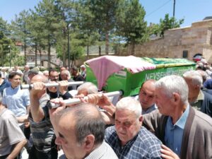 Kılınan Cenaze namazının ardından omuzlar üzerinde cenaze aracına taşınan emekli öğretmen Yıldız Gülmez’in cenazesi daha sonra Kaldırım Mezarlığında toprağa verildi.