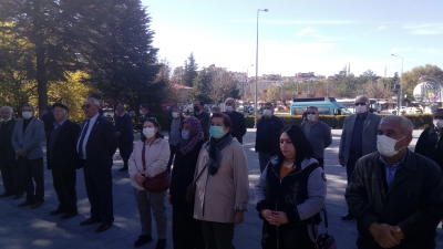 Nevşehir Valiliği’nde Atatürk Anıtı önünde eş zamanlı olarak CHP’nin 81 il örgütü tarafından yapılan  basın açıklamasını CHP İl Başkanı Kamil Gülmez yaptı.