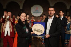 Gösteri sonunda Nevşehir Belediye Başkan Yardımcısı İbrahim Yüzer tarafından Çin Halk Cumhuriyeti Dans Topluluğu ekibine Kayaşehir figürlü plaket hediye edildi.