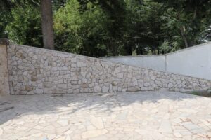 Açık hava tiyatrosunun iç yan duvarlarına yerli taş kaplama işlemi başladı