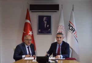 Başkan Aksoy; “ İlçemizde yapımı devam eden 250 Seyirci Kapasiteli Kapalı Spor Salonu, Doğal Çim Yüzeyli Futbol Sahası, 4’lü Çelik Soyunma Odası, 500 seyirci kapasiteli Portatif Tribün ve Aydınlatması, Mahalle Tipi Gençlik Merkezi, Halı Sahalı “Spor Kompleksi” için ek protokol imzalandı.