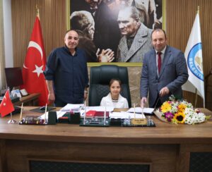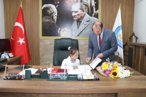 23 Nisan Ulusal Egemenlik ve Çocuk Bayramı kutlama etkinlikleri kapsamında Belediye Başkanı Taner İnce makamını bir süreliğine Derinkuyulu öğrenci Azra Fatma Erciyas’a bıraktı.