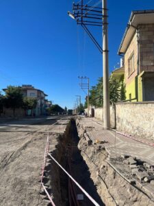 NEVŞEHİR(TRENDHABER)- Nevşehir’in Derinkuyu ilçesinre enerji nakil hatlarının yeraltına alınmasına yönelik çalışmalar Şehit Ali Güven Caddesi’nde devam ediyor.