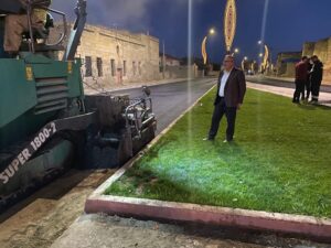 DERİNKUYU’DA SICAK ASFALTLAMA GECE DE DEVAM EDİYOR