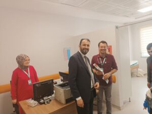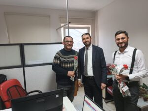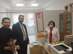 Nevşehir Devlet Hastanesi Başhekimi Uzm. Dr Macit Yalçın beraberinde başhekim yardımcıları Uzm. Dr. Rıdvan Güneş, Uzm. Dr. Abdullah Eyvaz, Uzm. Dr. Ömer Erdoğan, Uzm. Dr. M. Zübeyir Köse ile Dvölet Hastanesinde çalışan hekimlerin 14 Mart Tıp Bayramı’nı kutladı.