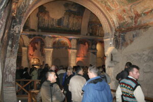 ‘Ama efendim araçlar kilisenin hemen yanından geçiyor ve kilise zarar görüyor’ diye düşünüyor ve bu anlamda kültürel ve algı ortaya koyuyorsanız ben de size diyorum ki; Uçhisar’dan Göreme beldesine gelişte hemen sağ tarafta eski HACININ YERİ RESTAURANT’IN HEMEN GİRİŞİNDE, ANAYOLUN EN FAZLA 2.5 METRE UZAĞINDA VE ÜSTÜNE ÜSTLÜK ARAÇLARIN VIZIR VIZIR GELİP GEÇTİĞİ YERDE BİR ŞAPEL VAR. İSMİ DE AZİZ HİERON ŞAPELİ. TOKALI KİLİSESİNİNİN ÖNÜNDEN ARAÇLAR VIZIR VIZIR GEÇTİĞİNDE MADEM ZARAR GÖRÜYORDA, AYNI YAPI MATERYALİNE SAHİP,YANİ AYNI VOLKANİK TÜF KAYAYA OYULU AZİZ HİERON ŞAPELİ, BU ARAÇLARIN GELİŞİ VE GİDİŞİ NEDENİYLE ZARAR GÖRECEĞİ ENDİŞESİ İLE BU YOLUN KAPATILMASI VE BU KAPSAMDA BU ALANA ALTERNATİF BİR YOL ARAYIŞI İÇERİSİNE GİRİLMİYOR O ZAMAN ? DİYE SORARLAR DİYE BURADAN BİR KEZ DAHA İLGİLİ MUHTEREM KARDEŞLERİMİZİ UYARIYORUZ. Kİ GERÇEKTE UYARMAMIZA BİLE GEREK YOK, ZATEN ŞAPELİN SOL TARAFINDA GEÇTİĞİMİZ YILLARDA ZATEN KÖKLÜ BİR TAHRİBAT YAŞANMIŞ VE YIKILMIŞ BİLE.