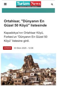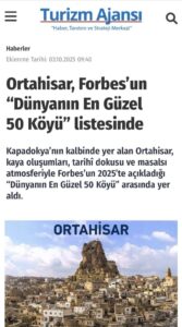 Kapadokya’nın kalbinde yer alan tarihi Ortahisar, Forbes’un 2025 “Dünyanın En Güzel 50 Köyü” listesine girdi!