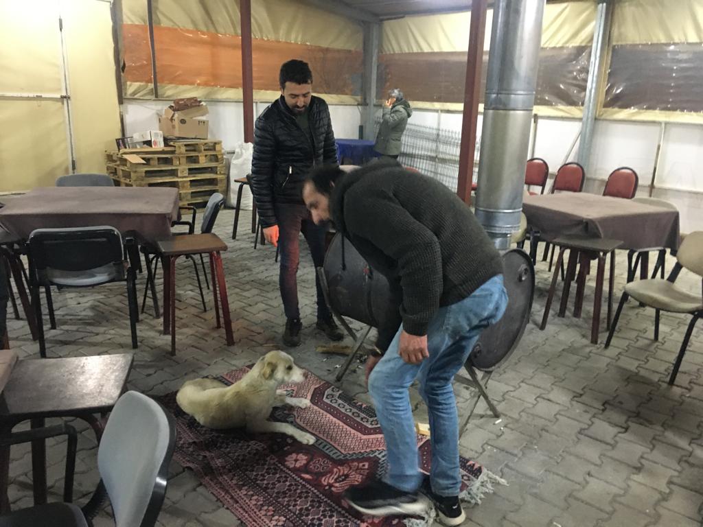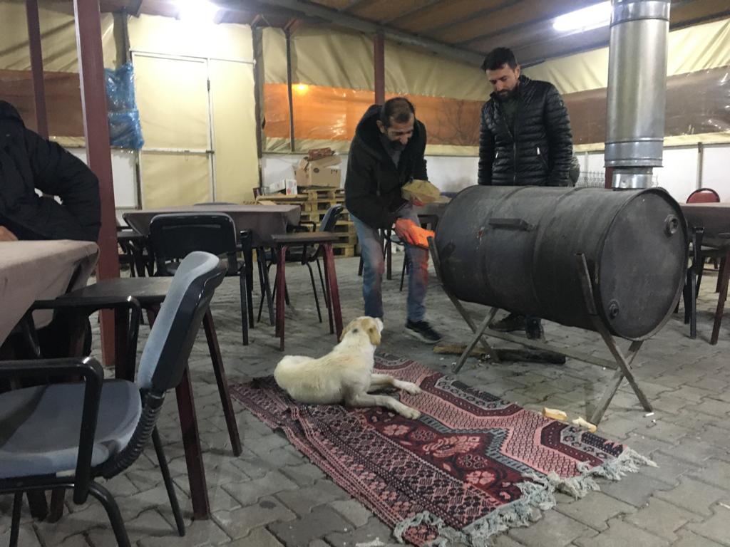 Bulduğu köpekleri Konakta yanan sobanın yanına getirerek onları ısıtan duyarlı işletmecisi, daha sonra sokak köpekleri de besledi.