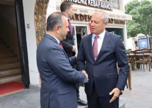Emniyet Müdürü Ali Loğoğlu’nu Belediye hizmet binası önünde karşılayan Başkan İbaş, daha sonra bir süre makamında  sohbet etti.
