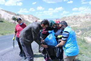 Ürgüp’te görev yapan Din görevlisi Mehmet Berat Tural; Farkındalık programında çok ilginç çöp ve atıklarla karşılaşıyoruz. Olabildiğince Kapadokya’yı temiz tutmaya gayret ediyoruz. Her etkinliğimizde çevre konusunda daha fazla kişinin duyarlı olmaya başladığını söyledi.