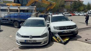 NEVŞEHİR(TRENDHABER)- Nevşehir Yeni Sanayi sitesinde park halindeki freni boşalan yüklü kamyon geri geri gelerek 4 araca çarptı.