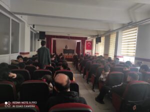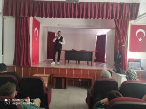 Ağız ve Diş Sağlığı ile ilgili bilgi veren diş hekimi a HMET Caner Irklı, öğrencilerin sorularını cevaplandırarak söyleşiyi tamamladı.