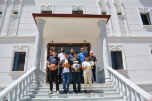 İl Müdürü Özdemir;” Yatılı olarak eğitim alan gençlerimize sporu sevdirmek, boş vakitlerini spor yaparak geçirmelerini sağlamak, fiziksel ve sosyal gelişimlerine katkıda bulunmak, Kur’an Kursunun avlusunda spor yapmalarına imkan sağlamak için spor malzemesi yardımında bulunuyoruz” dedi.