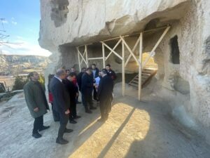 Bu kapsamda da Kapadokya Alan Başkanı Birol İnceciköz başkanlığındaki heyet, peribacalarının bakım,onarım ve restorasyon çalışmalarının devam ettiği Göreme’deki alanlarda incelemelerde bulundu ve yapılan iş ve işlemlere ilişkin olarak bilgiler aldı.