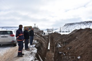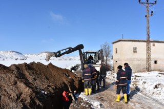 Göreme beldesi yakınlarında bulunan bol rezervli içme suyunun Göreme beldesine ulaştırılmasına yönelik isale hattında çalışmalar, kış mevsiminin olumsuz şartlarına rağmen aralıksız sürdürülüyor.