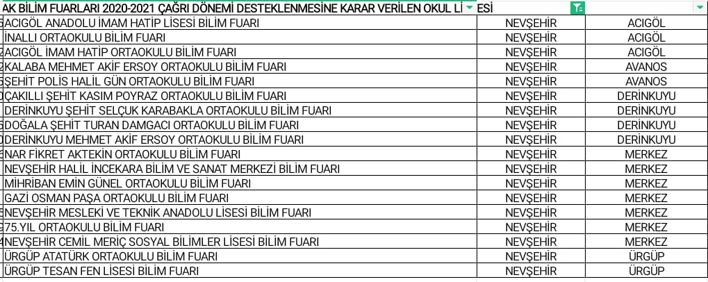 Nevşehir’den yapılan 31 başvurudan 18’i, Bilim Fuarı destek almaya hak kazanmıştır.