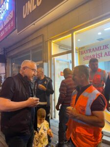 Belediye Başkanı Erkan Çiftçi, çalışmaları yerinde inceledi ve işçilere ikram edilen esnaf çayını içti.