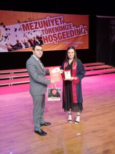 İlçe esnaflarından Abdi Yılmaz’ın Kızı Müjgan Yılmaz okulu Bölüm Birincisi ve Okul ikincisi olarak mezun oldu. Kendisine ödülünü Kaymakam Salih Gültekin verdi.