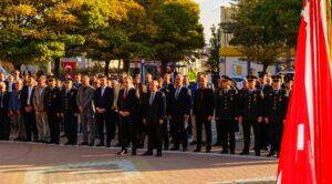 NEVŞEHİR(TRENDHABER)- Gülşehir Belediye Başkanı Erkan Çiftci, 10 Kasım Atatürk’ü Anma Günü münasebetiyle İlçe Kaymakamı Tolga Değirmenci, protokol üyeleri, STK başkanları ve  vatandaşların katılımıyla Hükümet Konağı Meydanı’nda anma törenine katılım sağladı.