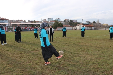 NEVŞEHİR(TRENDHABER)- Nevşehir’in Gülşehir ilçesinde ev hanımları ile çalışan kadınlardan oluşan Dimispor futbolcuları ,yeşil sahalarda buluştu.