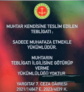 Mağduriyet yaşamamanız için Muhtarlık nerede bilin e-devleti öğrenin Tebligatlarınızı önemseyin. Teblig almamak geri dönüşü olmayan mağduriyetleri doğurur. Muhtarlığa uğrayıp adınıza Tebligat olup olmadığını anında öğrenebilirsiniz.” ifadelerinde bulundu.
