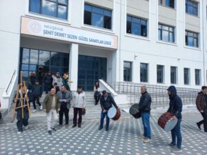 NEVŞEHİR(TRENDHABER)- Nevşehir’in Güzelyurt Mahallesi’nde her Ramazan ayı dönemindeki geleneksel uygulama bu yıl da değişmedi. Ramazan davulcuları topladıkları bahşişin bir bölümünü Güzelyurt Mahallesi Muhtarı Halit Yüncü aracılığıyla Güzelyurt Mahallesi‘ndeki İlk, Orta ve Liselerin  yetkililerine eğitime yönelik ihtiyaçların  karşılanması amacıyla  makbuz karşılığında takdim ettiler.